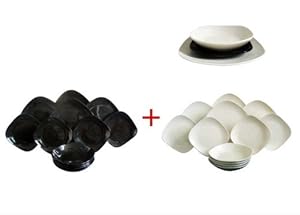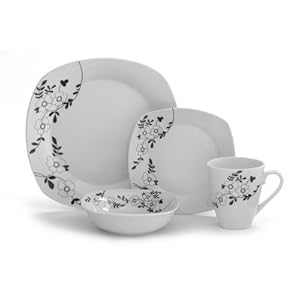 24 piece black and cream square dinner