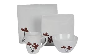 655/328 Features: -Colour: Brown.-Square shape. Includes: -Set includes 4 dinner plates, 4 side plates, 4 bowls and 4 mugs. Color/Finish: -Matt finish with brown flower design.